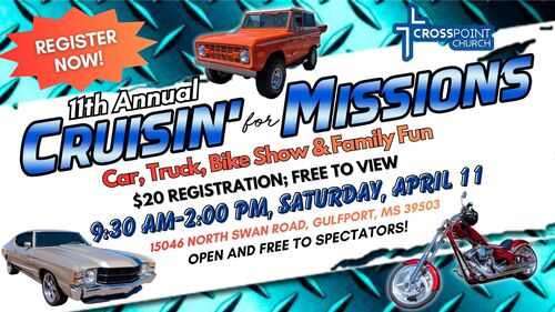 Crosspoint Church gears up each year for their Cruisin’ for Missions Car Show and Family Day, a community event with features that reach far beyond Gulfport, Mississippi.