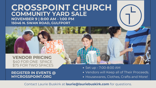 First, register for your space at the Crosspoint Community Yard Sale.